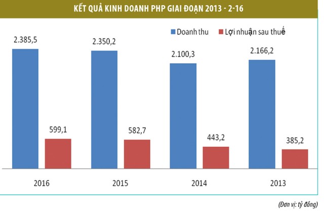 Kể từ khi được cổ phần hóa, hiệu quả kinh doanh của PHP có tốc độ tăng trưởng đáng kể. Cụ thể, năm 2015, doanh thu của Công ty tăng gần 250 tỷ đồng, tương đương mức tăng trưởng 11,9% so với năm 2014; lợi nhuận sau thuế tăng 140 tỷ đồng, tăng trưởng 31,5%. Năm 2016, PHP đạt doanh thu thuần hợp nhất 2.385 tỷ đồng, tăng 35 tỷ đồng so với năm trước. Doanh thu tăng cộng với giá vốn giảm nhẹ giúp Công ty đạt lãi gộp 889,6 tỷ đồng, tăng gần 40 tỷ đồng so với cùng kỳ.