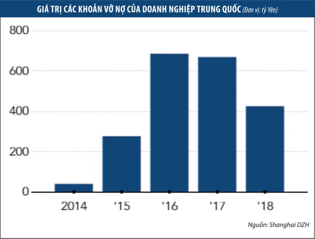 Trong 6 tháng tính tới tháng 6/2018, các doanh nghiệp Trung Quốc đã mất khả năng trả các khoản nợ trái phiếu bằng đồng nội tệ với giá trị ít nhất 20,7 tỷ Nhân dân tệ (3,19 tỷ USD) và khoảng 350 triệu USD nợ bằng đồng USD, tăng 40% so với cùng thời gian năm ngoái, theo số liệu tổng hợp bởi Shanghai DHZ và nhiều nguồn khác.