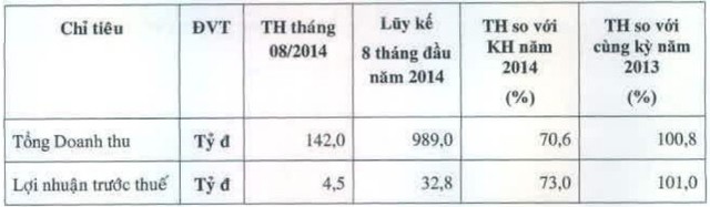 Theo đó, trong tháng 8, TNA đạt doanh thu 142 tỷ đồng và lợi nhuận trước thuế 4,5 tỷ đồng.