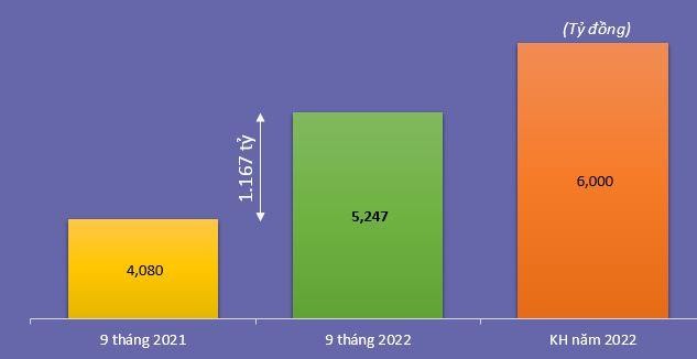Lũy kế doanh thu 9 tháng, Công ty đạt 5.247 tỷ đồng, tăng 29% so với cùng kỳ và hoàn thành 87,5% kế hoạch năm 2022.
