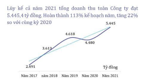 Tính riêng quý IV/2021, Công ty đạt doanh thu thuần hơn 1.363 tỷ đồng, tăng 42,8% so với cùng kỳ. Trong khi đó, tỷ lệ tăng chi phí vốn thấp hơn với chỉ 41,1%, dẫn đến lợi nhuận gộp từ bán hàng và cung cấp dịch vụ đạt 213 tỷ đồng, tăng 53,5% so với cùng kỳ. Biên lợi nhuận gộp cũng tăng từ 14,6% lên 15,6%.