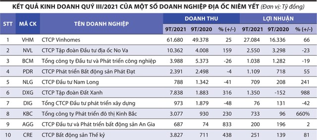 Đồng quan điểm, ông Đỗ Bảo Ngọc, Phó tổng giám đốc Công ty Chứng khoán Kiến Thiết Việt Nam dẫn chứng, phần lớn doanh nghiệp bất động sản đều ghi nhận giá trị hàng tồn kho tăng mạnh trong quý III/2021, khi đây là thời điểm phải thực hiện giãn cách xã hội kéo dài để ngăn ngừa dịch bệnh Covid-19 lây lan mạnh, dẫn tới các hoạt động kinh doanh bị ngưng trệ. Một số doanh nghiệp triển khai bán hàng online, nhưng khó có thể đạt hiệu quả cao vì nhà đất là tài sản giá trị, người mua cần được “mắt thấy, tay sờ” trước khi xuống tiền.