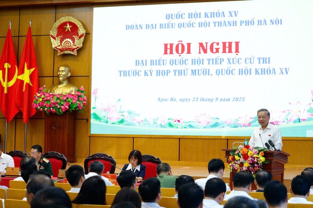 Chiều 23/9, Tổng Bí thư Tô Lâm cùng các đại biểu Quốc hội thuộc đơn vị bầu cử số 1 tiếp xúc cử tri 11 phường của Hà Nội trước thềm kỳ họp thứ 10 Quốc hội khóa XV.