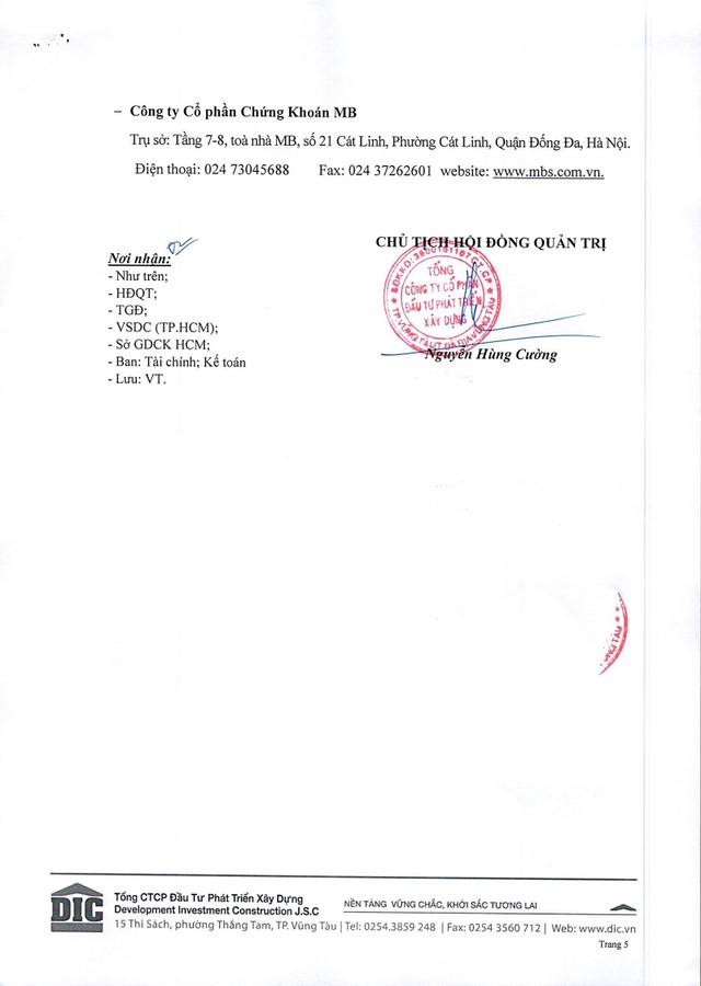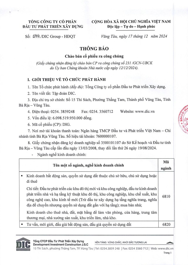 DIC Corp (DIG) đã hoàn thành toàn bộ thủ tục hành chính và nghĩa vụ tài chính liên quan kết luận thanh tra
