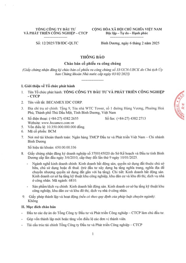 Becamex IDC (BCM) muốn huy động 1.080 tỷ đồng trái phiếu được đảm bảo bằng 19 thửa đất tại Bình Dương