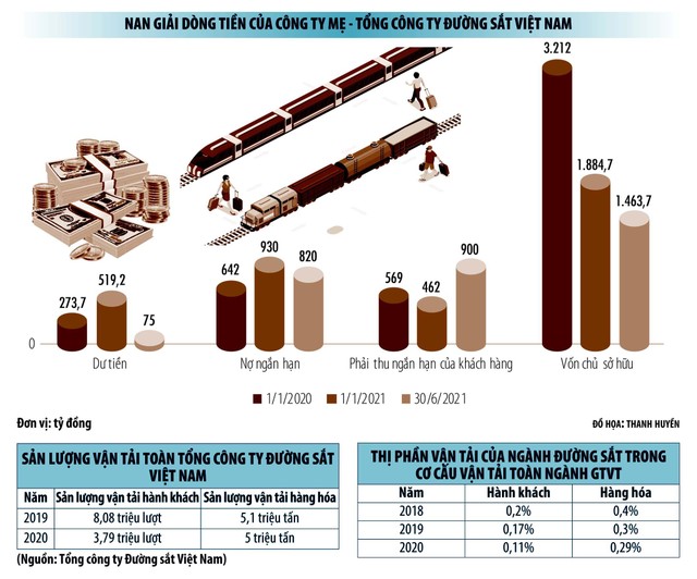 “Tổng công ty sẽ mất hết vốn chủ sở hữu và đặc biệt khó khăn về dòng tiền hoạt động, mất cân đối nghiêm trọng dẫn đến có thể dừng hoạt động sản xuất, kinh doanh kể từ quý II/2022”, lãnh đạo Tổng công ty Đường sắt Việt Nam.