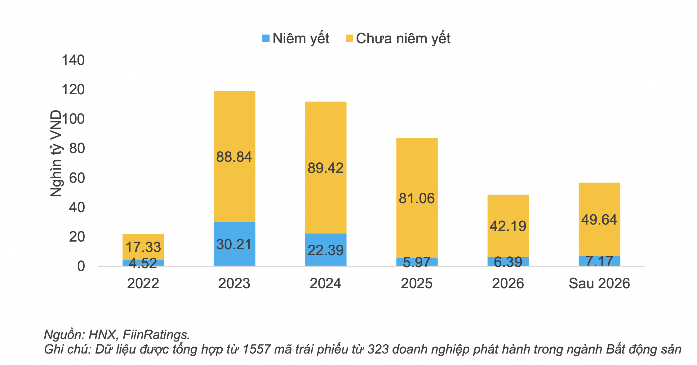 Bên cạnh đó, áp lực vẫn duy trì ở mức đáng kể từ năm 2023 (119.050 tỷ đồng) và năm 2024 (111.810 tỷ đồng).