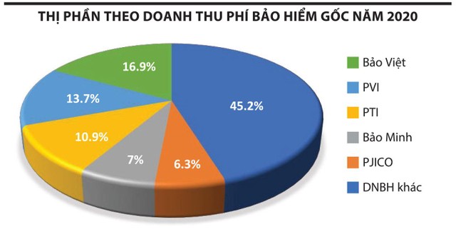 Theo số liệu công bố của Cục Quản lý giám sát bảo hiểm (Bộ Tài chính), năm 2020, Bảo hiểm Bảo Việt là nhà bảo hiểm dẫn đầu thị trường về doanh thu phí bảo hiểm gốc khi ước đạt 9.301 tỷ đồng (giảm 9,7% so với năm 2019), các vị trí tiếp theo lần lượt là Bảo hiểm PVI (7.547 tỷ đồng và tăng 3,4%), Bảo hiểm Bưu điện - PTI (6.000 tỷ đồng và tăng 5,4%), Bảo hiểm Bảo Minh (3.864 tỷ đồng và giảm 0,3%) và Bảo hiểm Petrolimex - PJICO (3.479 tỷ đồng và tăng 13,5%).