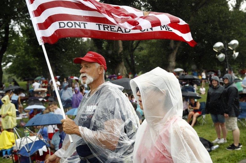 Cơn mưa lớn chiều 4/7 làm dấy lên lo lắng rằng một số hoạt động kỷ niệm như trình diễn máy bay quân sự và pháo hoa có thể bị ảnh hưởng. Ảnh: AP.