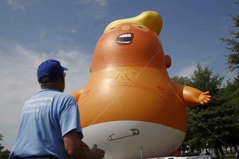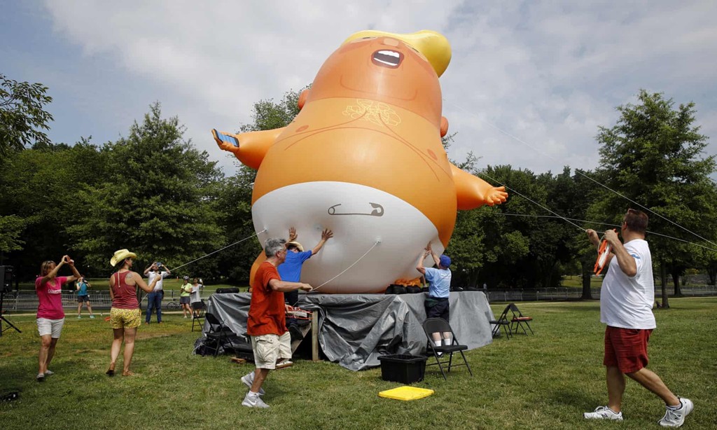 Trước khi ông Trump có bài phát biểu, tổ chức chống chiến tranh Codepink đã cho dựng quả bóng "em bé Trump" khổng lồ để phản đối việc mà họ gọi là ông Trump đã lợi dụng ngày quốc khánh Mỹ. Ảnh: AFP/Getty.