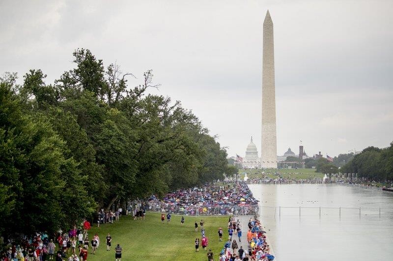 Đám đông, bao gồm những người ủng hộ Tổng thống Donald Trump và những người phản đối ông, đã tập trung về khu vực xung quanh đài tưởng niệm Lincoln tại thủ đô Washington D.C, để nghe bài phát biểu "Chào nước Mỹ" của ông trong ngày quốc khánh 4/7. Ảnh: AP.