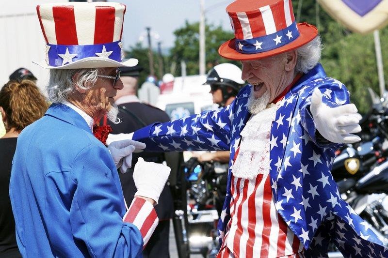 Nhiều người đã hóa trang thành các nhân vật lịch sử để mừng ngày quốc khánh Mỹ. Trong ảnh là một người hóa trang thành George Washington, một trong những người sáng lập nước Mỹ. Ảnh: AFP/Getty.