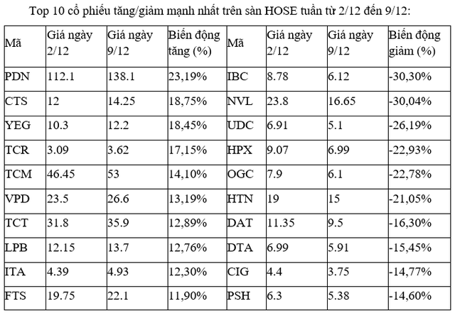 Top 10 cổ phiếu tăng/giảm mạnh nhất tuần: Bất động sản lại quay đầu giảm mạnh