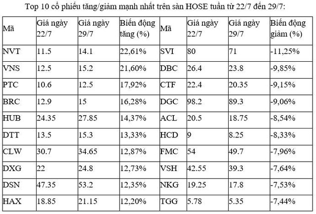 Trên sàn HOSE, cổ phiếu tăng mạnh nhất là NVT, với cả năm phiên trong tuần đều tăng, trong đó, ba phiên gần nhất tăng từ 6,4% đến 6,9%. Dù vậy, gần đây NVT không có thông tin nào mới đáng kể.