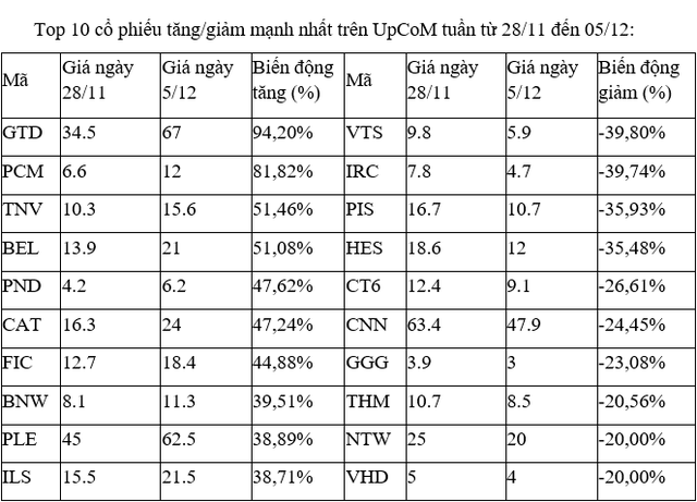 Trên UpCoM, cổ phiếu GTD của CTCP Giầy Thượng Đình có thêm một tuần tăng mạnh và dẫn đầu đà tăng, sau khi tăng gần 100% trong tuần trước đó.