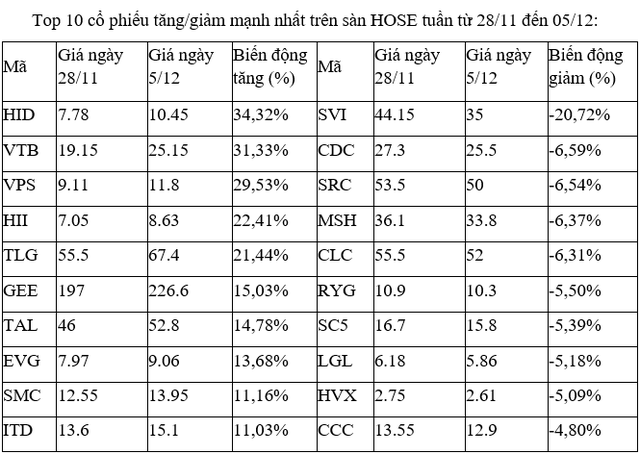 Trên sàn HOSE, thêm một tuần mà hai cổ phiếu HID, GEE góp mặt trong số những mã tăng cao nhất. Tuần trước HID tăng 15,6%, còn GEE tăng gần 15%.