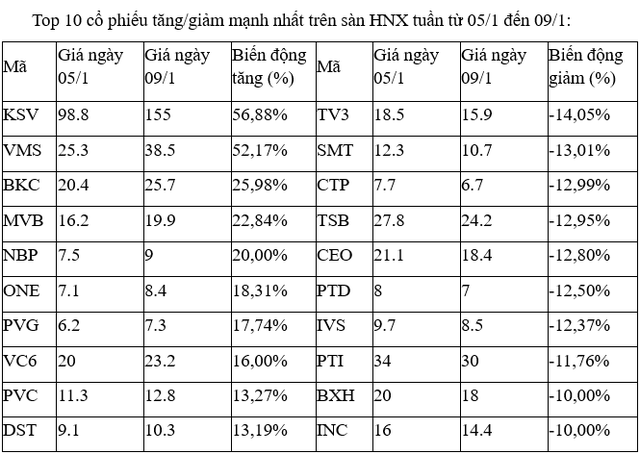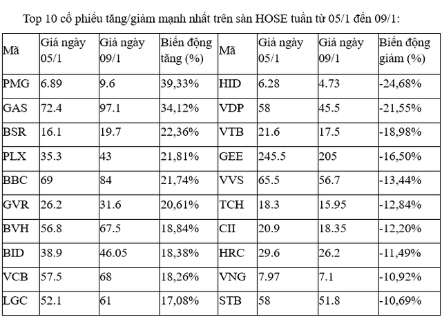 Top 10 cổ phiếu tăng/giảm mạnh nhất tuần: Các cổ phiếu dầu khí khởi sắc