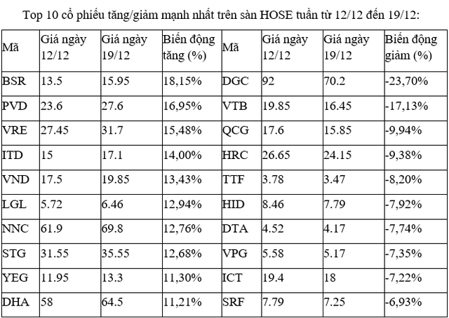 Top 10 cổ phiếu tăng/giảm mạnh nhất tuần: Cặp đôi dầu khí BSR-PVD dẫn sóng, VRE hồi phục mạnh