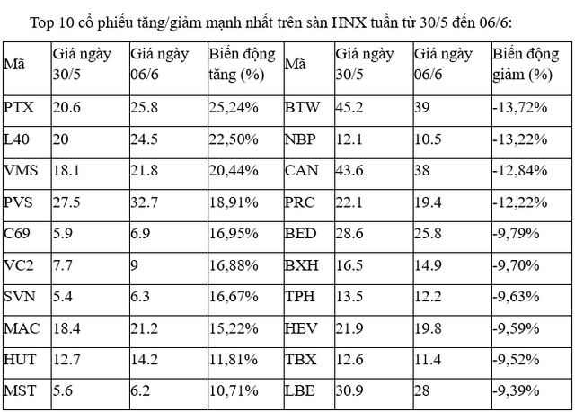 Đáng kể khác là cổ phiếu PVS khi cũng có tuần khởi sắc với mức tăng gần 20%, sau khi tổ chức Đại hội đồng cổ đông thường niên 2025 vào ngày 29/5 vừa qua, trong đó, kế hoạch kinh doanh 2025 thấp hơn thực hiện năm 2024, nhưng vẫn sẽ trả cổ tức năm 2024 theo tỷ lệ 7% bằng tiền.