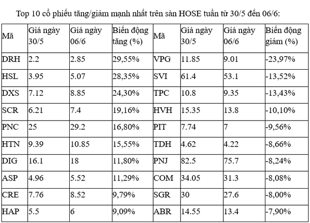 Trên sàn HOSE, phản ánh dòng tiền đầu cơ chảy mạnh và thêm một tuần nữa đích đến vẫn là nhóm các cổ phiếu bất động sản vừa và nhỏ, với loạt cổ phiếu trong ngành như HTN, SCR, DXS, DRH đều ghi nhận mức tăng mạnh, trong khi CRE, DIG cũng nhích trên dưới 10%.