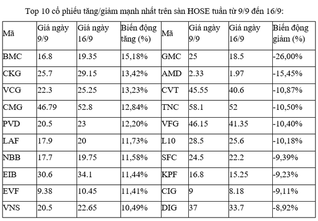 Cổ phiếu CMG có tuần thứ hai liên tiếp tăng tốt, sau khi tuần trước +9,15%, sau ngày 13/9 đã chốt danh danh sách cổ đông nhận cổ tức và cổ phiếu thưởng tổng cộng 37,62%.