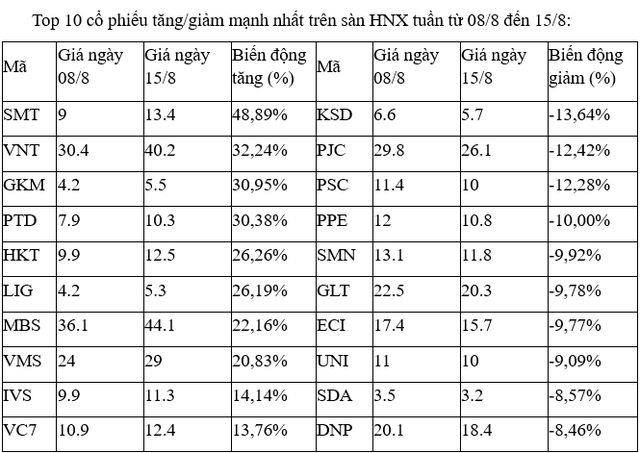 Trên sàn HNX, nhóm cổ phiếu vừa và nhỏ, có tính đầu cơ cao chiếm sóng khi nhiều cổ phiếu góp mặt trong top các mã tăng cao nhất như IVS, VC7, LIG, HKT, GKM, SMT.