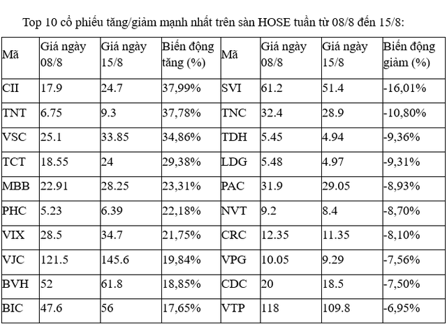 Các cổ phiếu khác đáng chú ý như VIX, VSC khi cũng có tuần tăng mạnh khi tiếp tục đón nhận dòng tiền mạnh, thanh khoản luôn nằm trong top những mã cao nhất sàn.