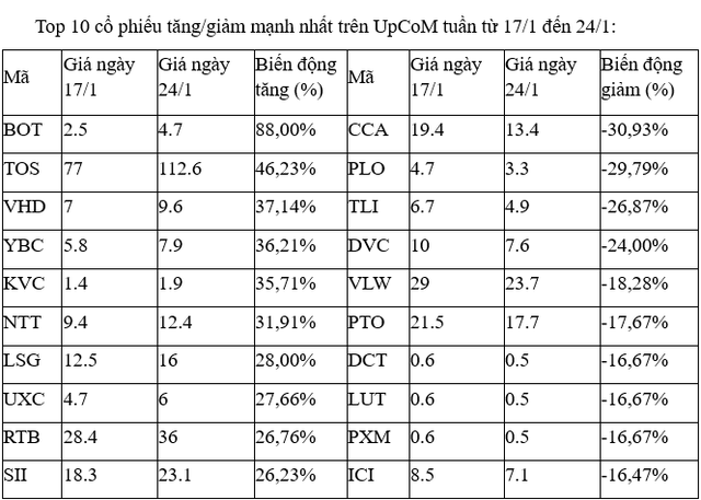 Trong đó, cổ phiếu BOT tăng kịch trần cả năm phiên và có phiên kỷ lục hơn 9,3 triệu đơn vị khớp lệnh trong ngày 23/1.