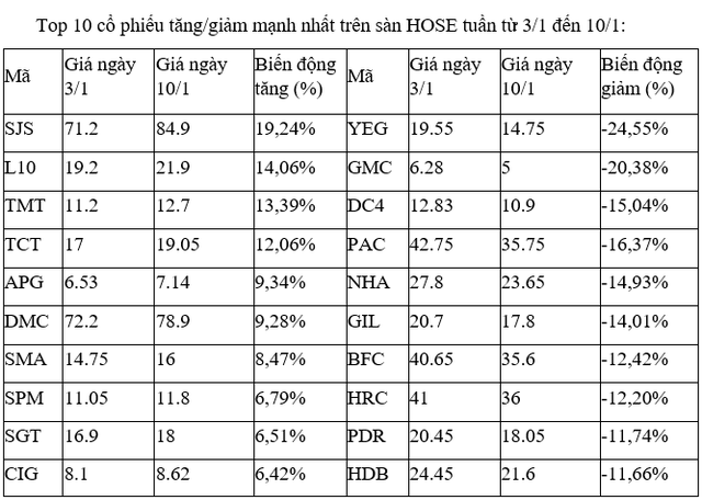 Top 10 cổ phiếu tăng/giảm mạnh nhất tuần: Cổ phiếu TMT duy trì đà tăng, YEG bị bán tháo
