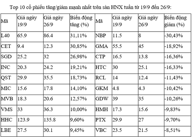 Top 10 cổ phiếu tăng/giảm mạnh nhất tuần: Cổ phiếu xây dựng, đầu tư công nhận được sự chú ý