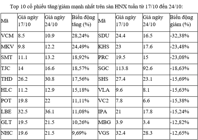 Trên UpCoM, hầu như các cổ phiếu biến động mạnh nhất về giá tiếp tục có tuần giao dịch ảm đạm. Ngoại trừ hai cổ phiếu VEC ở chiều tăng và DFF ở chiều giảm khi có những phiên thanh khoản tương đối cao.