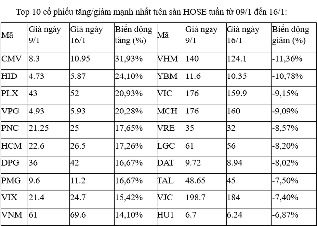 Top 10 cổ phiếu tăng/giảm mạnh nhất tuần: Dòng tiền hướng đến cổ phiếu có thông tin riêng