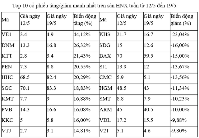 Trên sàn HNX, cổ phiếu VE1 có thêm một tuần tăng mạnh sau khi đã +34,2% trong tuần trước, nhưng thanh khoản trong các phiên khá thấp, chỉ vài chục nghìn đơn vị khớp lệnh/phiên.