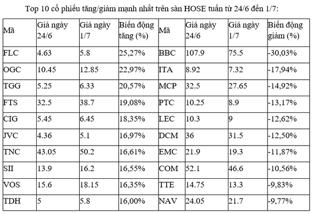 Đây cũng là tuần thứ hai liên tiếp FLC lọt vào top các mã tăng mạnh nhất sàn. Tuần trước, cổ phiếu này +18,11%.