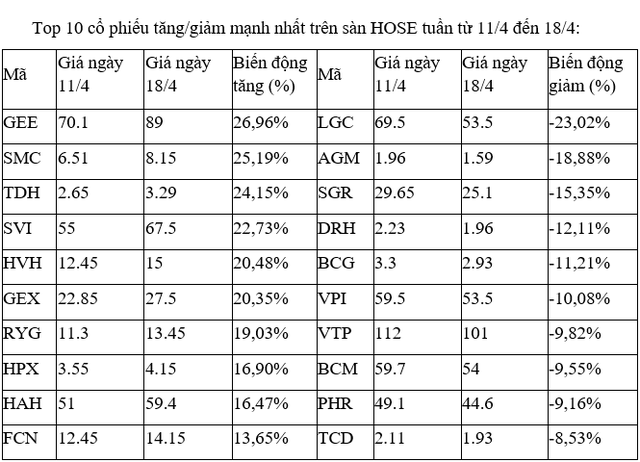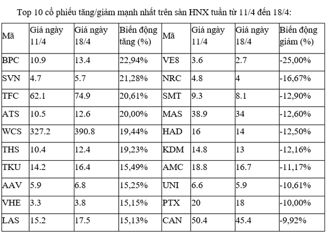 Trên sàn HNX, gần như các cổ phiếu tăng, giảm mạnh nhất tuần này không nhiều diễn biến đáng chú ý nào, khi đa số giao dịch với khối lượng mỏng trong các phiên.