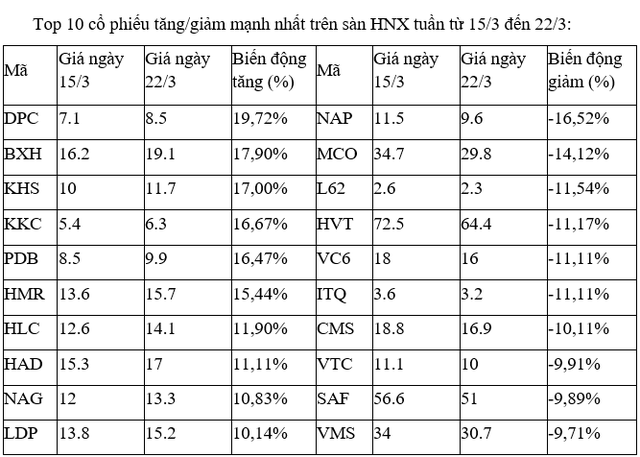 Trên sàn HNX, cổ phiếu MCO bị chốt lời và chấm dứt chuỗi ba tuần liên tiếp lọt top những mã tăng cao nhất sàn trước đó.
