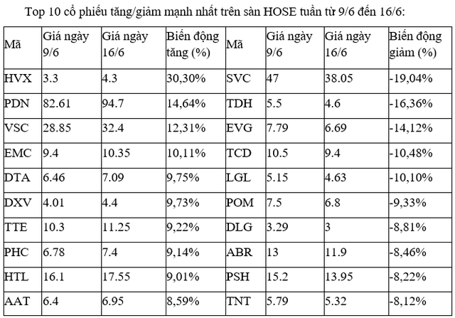 Trên UpCoM, tuần này các cổ phiếu tăng, giảm mạnh nhất đều ít có diễn biến đáng kể nào khi thanh khoản duy trì ở mức thấp.
