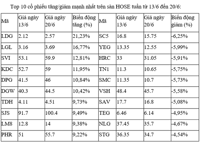 Trên sàn HOSE, các cổ phiếu tăng mạnh nhất với điểm nhấn là tại nhóm cổ phiếu bất động sản, xây dựng với một số mã như LDG, LGL, TDH, SJS, DPG và tay chơi mới gia nhập ngành là KDC. Tuy nhiên, chỉ LDG và LGL, hai mã nhỏ có tính đầu cơ cao có mức tăng vượt trội, còn lại tăng trên dưới 10%.