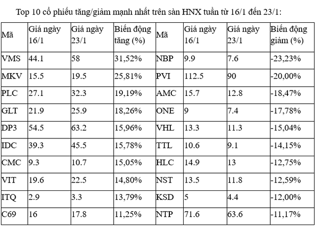 Top 10 cổ phiếu tăng/giảm mạnh nhất tuần: Nhiều cổ phiếu bị chốt lời, tân binh DCV nổi sóng