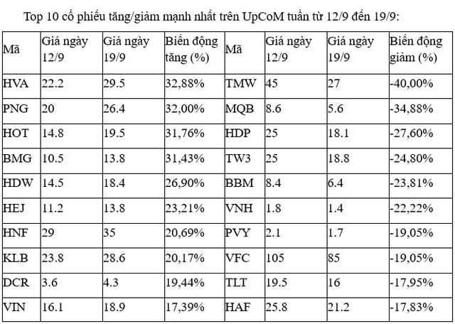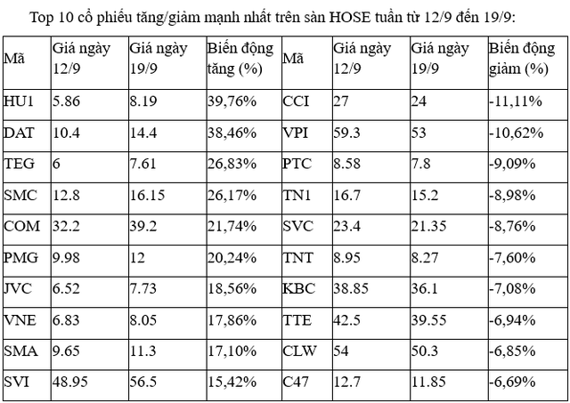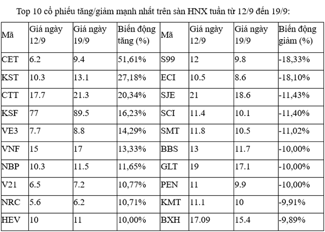 Top 10 cổ phiếu tăng/giảm mạnh nhất tuần: Nhiều cổ phiếu nhỏ tăng mạnh