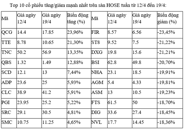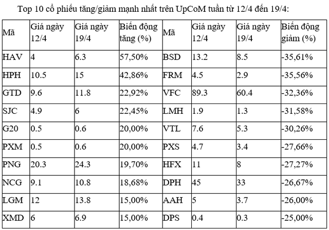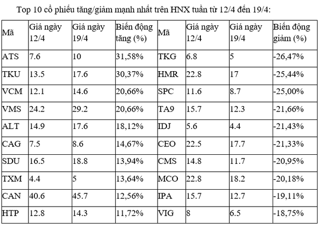 Ở chiều ngược lại, các mã tăng đều giao dịch khá ảm đạm trong phiên, ngoại trừ HTP, khi trung bình khớp lệnh trên dưới 0,7 triệu đơn vị/phiên, trong đó, có phiên 17/4 với hơn 2,62 triệu đơn vị.