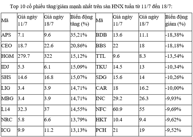 Trong đó, cổ phiếu LDG có tuần thứ hai liên tiếp là mã tăng cao nhất sàn, khi tuần trước +39,1%. Tương tự là TCD, khi cũng thêm một tuần lọt top các cổ phiếu tăng mạnh nhất sàn. Tuần trước, TCD tăng 21,2%.