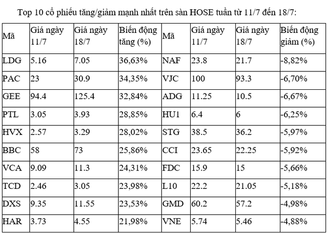 Top 10 cổ phiếu tăng/giảm mạnh nhất tuần: Nhóm bất động sản khởi sắc