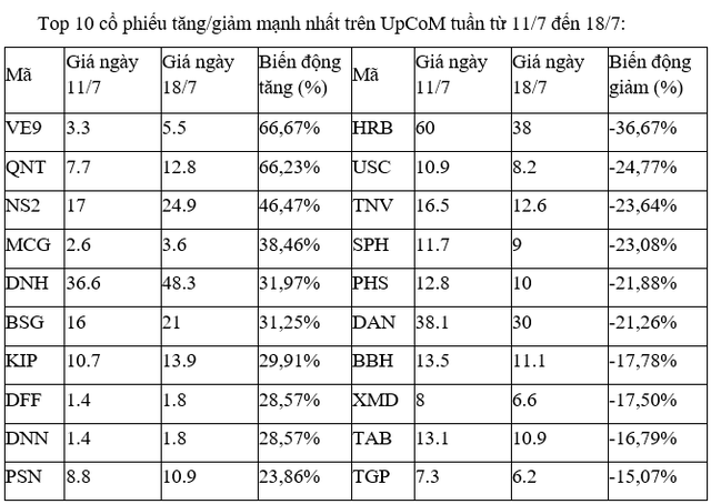 Trên UpCoM, cổ phiếu VE9 dẫn đầu đà tăng với cả 5 phiên đều tăng kịch trần, khớp lệnh vượt trội so với thời gian trước, dù cũng chỉ trung bình trên dưới 0,15 triệu đơn vị/phiên, trừ phiên cuối tuần khi khớp được gần 0,75 triệu đơn vị.
