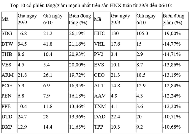 Ở chiều ngược lại, nhóm cổ phiếu giảm đa phần các là mã bất động sản, có tính đầu cơ rất cao như QCG, PTL, DC4, DXG, DIG, NVL. Trong đó, PTL và DC4 có tuần thứ hai liên tiếp thuộc nhóm giảm sâu nhất. Tuần trước PTL giảm 13,1% và DC4 giảm 15,9%.