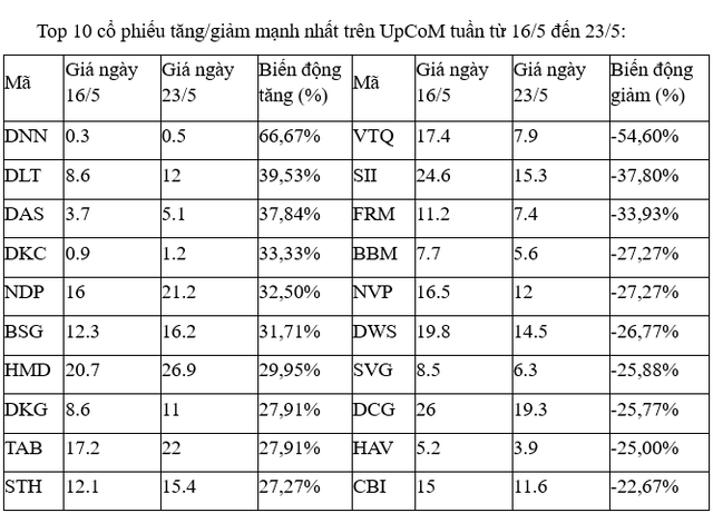 Trên UpCoM, thêm một tuần mà các cổ phiếu biến động mạnh nhất đều giao dịch thưa thớt, thanh khoản khớp lệnh thấp trong các phiên.