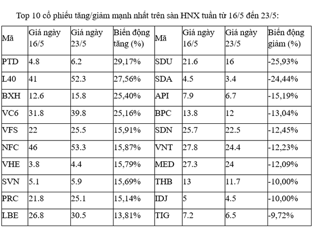 Trên sàn HNX, phần lớn các mã tăng tốt nhất đều thanh khoản thấp. Ngoại trừ cổ phiếu VFS, khi thanh khoản duy trì ở mức tích cực, khớp trung bình 2-3 triệu đơn vị/phiên trong tuần. Tương tự là VHE, SVN khi cũng có thanh khoản ở mức khá, nhưng trồi sụt.