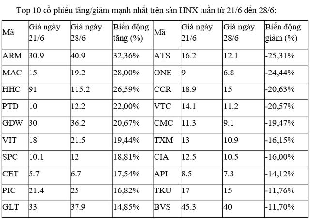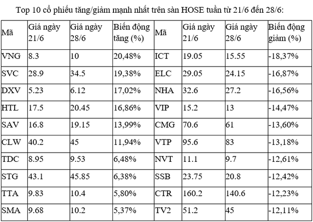 Tương tự, các cổ phiếu tăng tốt nhất còn lại trên sàn như VNG, SVC, HTL, CLW, STG, SMA đều chỉ giao dịch với thanh khoản thấp trong các phiên. Ngoại trừ SAV, khi tuần này đột biến với ba phiên khớp trên dưới 0,8 triệu đơn vị.