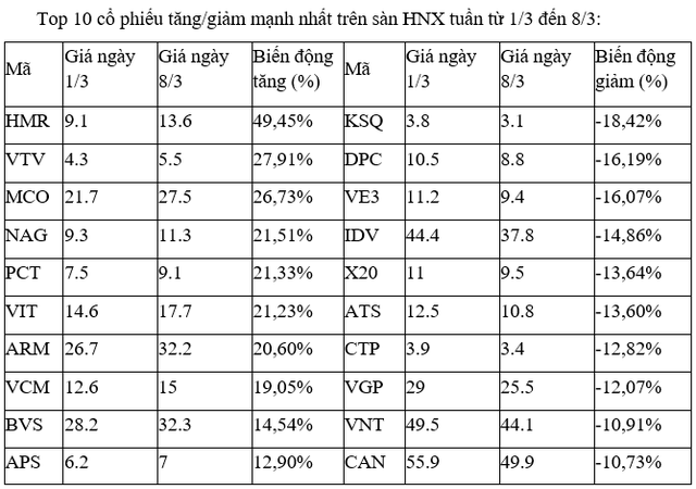 Trên sàn HNX, cái tên MCO thêm một tuần xuất hiện sau khi tuần trước tăng hơn 13%, dù thanh khoản chưa có nhiều cải thiện với chỉ trên dưới 0,2 triệu đơn vị khớp lệnh/phiên.