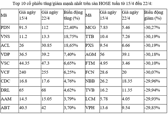 Mặt khác, phản ảnh sự ảm đạm của thị trường, theo dữ liệu, ngoài những cổ phiếu trong top 10 này, thì còn tương đối nhiều cổ phiếu khác cũng có mức giảm sâu và phần lớn là các mã vốn hóa vừa và nhỏ, như TCD, TDH, BCG, HAR, DAG, HQC, YEG, TGG, DLG, QBS giảm từ 25% đến gần 30%.